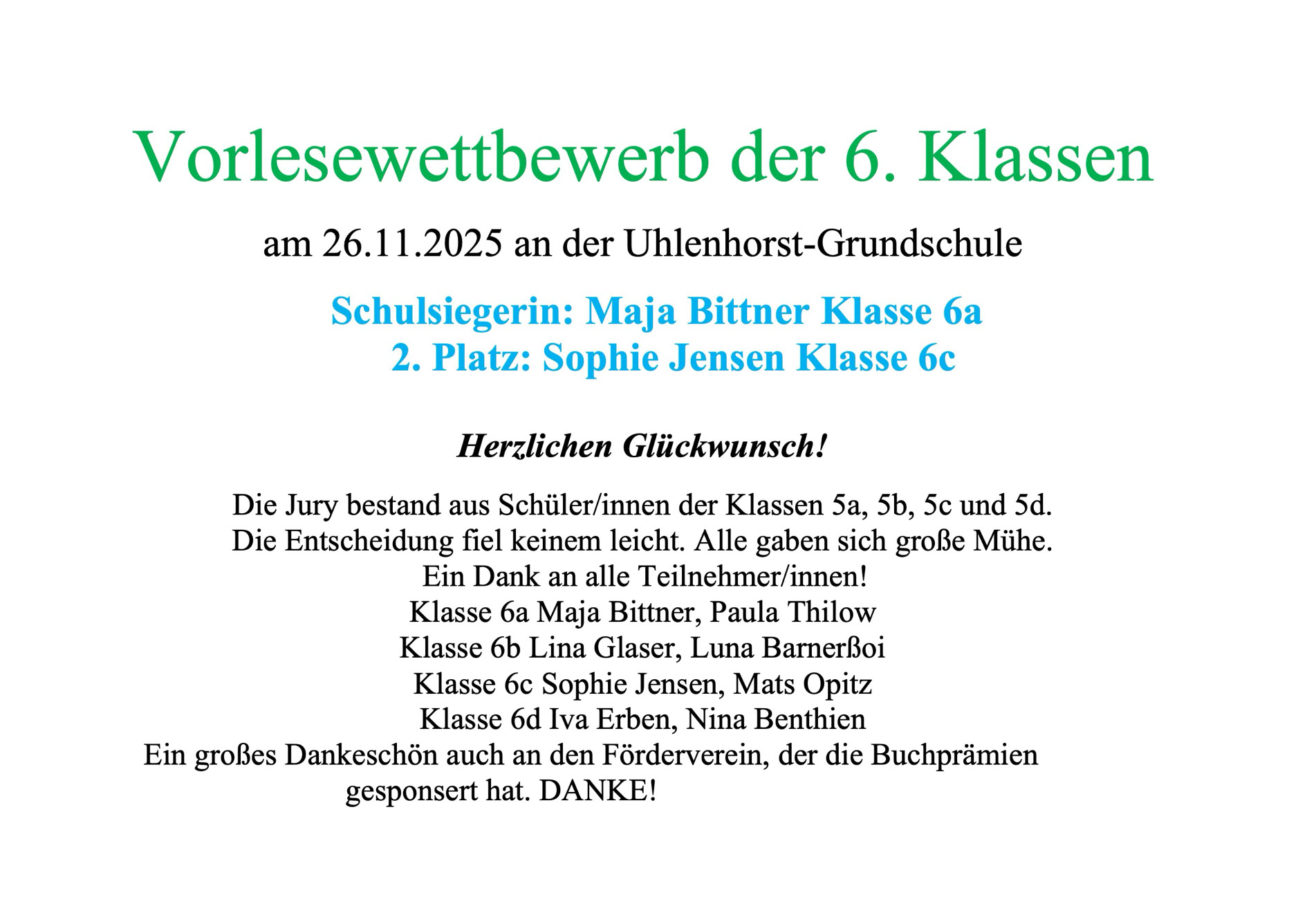 Ein großes Dankeschön auch an den Förderverein, der die Buchprämien gesponsert hat.