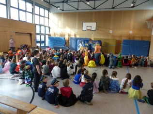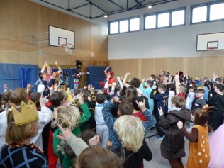 Auch in diesem Schuljahr wurde am 28.02.2025 die Faschingszeit mit einem dreifachen „Hellau, Hellau, Hellau …“ an unserer Schule beendet. Die Klassen der Schulanfangsphase feierten mit viel Lachen, bunten Luftschlangen, lauter Musik und jeder Menge Spaß in den Eulennestern. In der Turnhalle gab es eine riesen Party mit dem Clownpaar „Dudellumpi“. Unsere dritten Klassen hatten Spaß an einzelnen Stationen mit faschingshaften Knobelaufgaben, Rätseln und Basteleien. Am Nachmittag wurde auch dort noch getanzt und gespielt. Etwas ruhiger aber auch aufregend ging es bei den 4. Klassen beim Faschingsbowling im LeProm zu.
