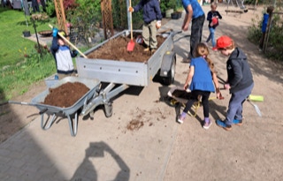 Engagierte Eltern, Kinder und Lehrkräfte haben am Samstag den 13.04.2024 bei einem Arbeitseinsatz unseren Schulhof verschönert. Nebenbei gab es Grillwürstchen und Getränke, sodass aus der Arbeit ein wirklich schöner gemeinschaftlicher Tag wurde. Hinter dem Eulennest 2 sind nun 9 neue Hochbeete entstanden, sodass wir wieder einen kleinen Schulgarten haben, der ab sofort von unseren Kindern bepflanzt werden kann. Das wird super!